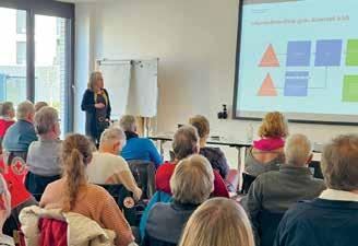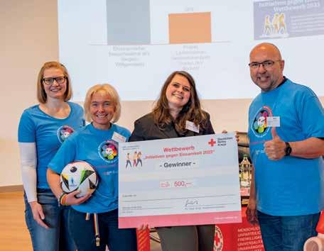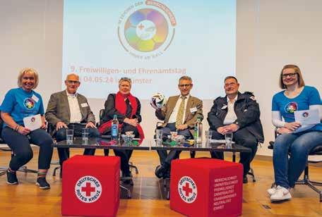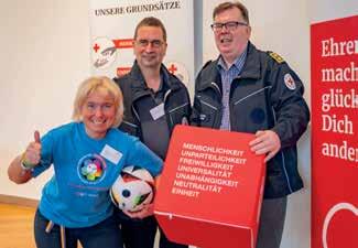 Aktuell stehen sowohl wir als DRK als auch die gesamte Gesellschaft vor großen Herausforderungen: Wir brauchen mehr Ehrenamtliche, die Anforderungen steigen aufgrund der Zunahme multipler und komplexer Krisen: Ukraine-Krise, Nahost-Konflikt sowie zuvor Corona, Energiemangellage und Hochwasserkatastrophe. Aktuell findet die FußballEuropameisterschaft statt, bei der wir in Westfalen mit zwei Spielstandorten in Dortmund und Gelsenkirchen zusätzlich besonders gefordert sind. Das Motto unseres diesjährigen Freiwilligen- und Ehrenamtstages „Im Zeichen der Menschlichkeit immer am Ball“ nahm darauf ebenso Bezug wie die Titel der 18 Info- bzw. Workshops, zum Beispiel: „Rotkreuzarbeit ist Mannschaftssport“ oder „Auswärtsspiel: Aktiv in der Auslandshilfe des DRK“.