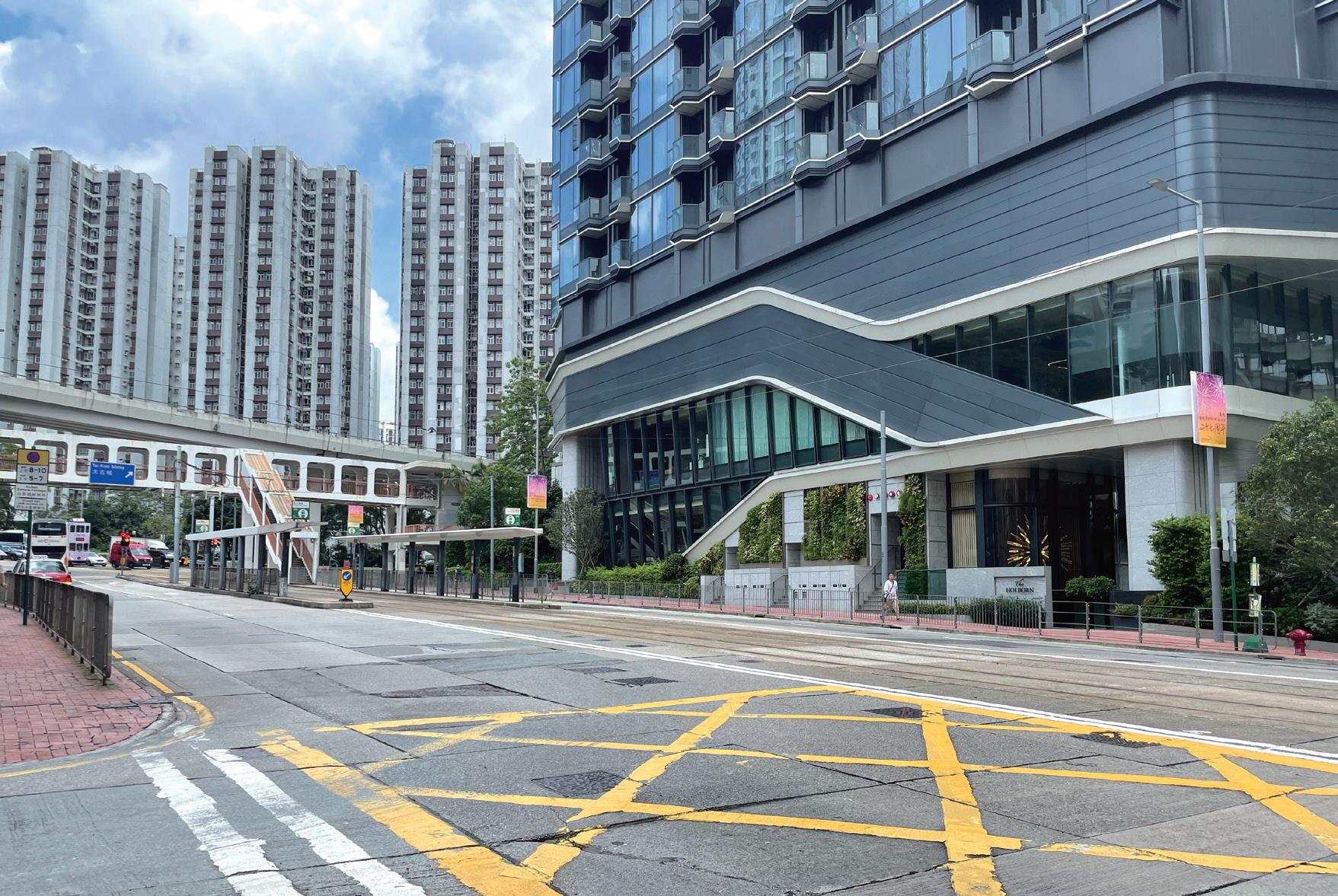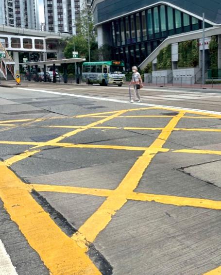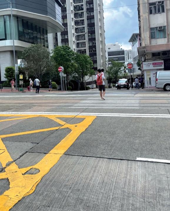 該處路面規劃十分複雜,除了東行及西行方 向各兩條行車道,還有兩條電車路,總共六 線行車。偶爾會有東行方向車輛在該路段 「U-Turn」調頭,對沒有使用過路設施橫過 馬路的行人構成極大的危險。