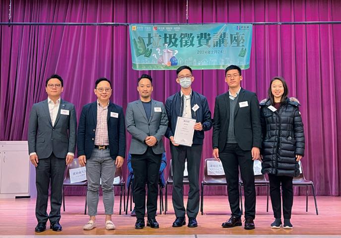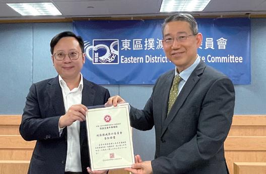 從東區民政事務專員手上接過 滅罪會的委任狀