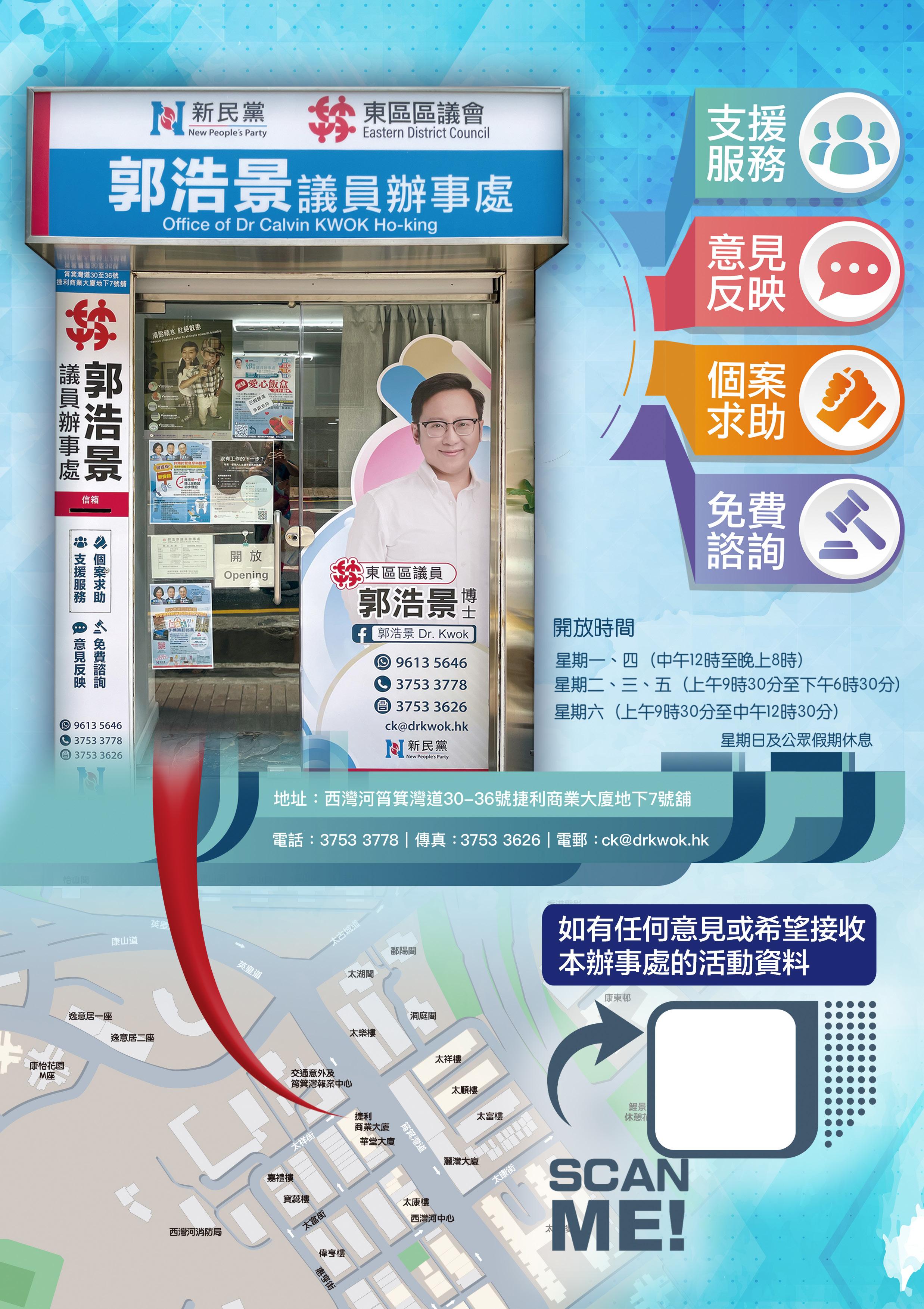 作為東區區議員,浩景關注東 區的整體情況,收到城外市民求 助,浩景也會盡力協助。