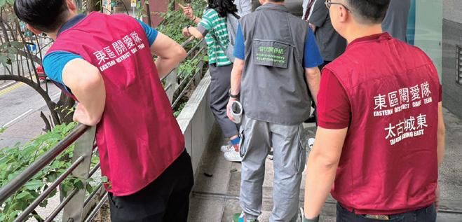 浩景一直密切留意太古城的衛生及治安狀 況。於5月底,浩景與東區民政事務專員及東 區食物環境衛生署總監一同巡視了鰂魚涌公園 及太古城屋苑內的公眾地方,了解食環署的滅 蚊及滅鼠工作。隨後,針對城友反映的公園內