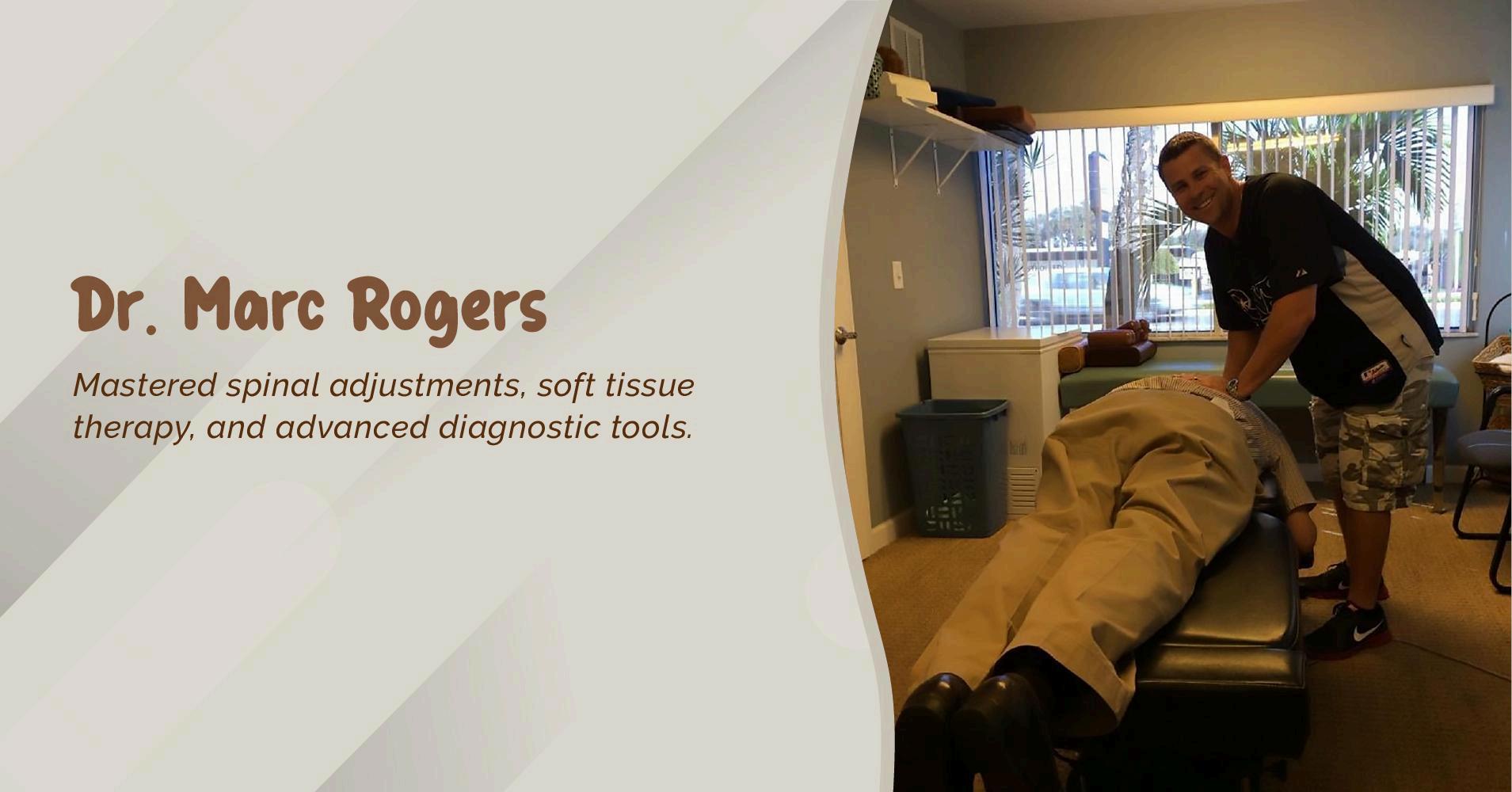 Dr. Marc Rogers was raised in Pinellas County, Florida, and has worked as a chiropractor in the area for more than 11 years Rogers has been transforming the lives of his patients for over a decade.