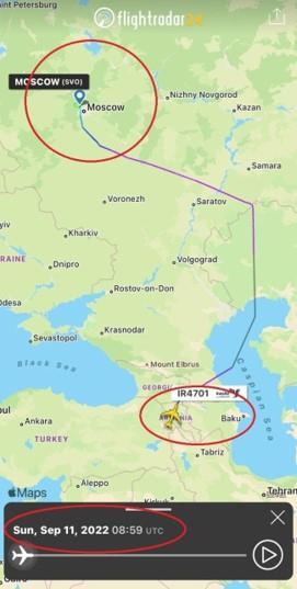 31 ერევანში, ზვარტნოცის აეროპორტთან თვითმფრინავმა სარადარო სისტემა გათიშა. სომხეთის დატოვების შემდეგ თვითმფრინავი საქართველოს საჰაერო სივრცეში შემოფრინდა, საიდანაც რუსეთის ფედერაციაში შევიდა და მოსკოვში დაეშვა სავარაუდოდ, ფრენა საქართველოს გავლით იმიტომ განხორციელდა, რომ აზერბაიჯანმა რუსეთში მიმავალ ირანულ სატვირთო თვითმფრინავს საჰაერო სივრცის დათმობაზე უარი უთხრა. 5 სექტემბერს იგივე თვითმფრინავი კასპიის ზღვის გავლით ირანში დაბრუნდა.