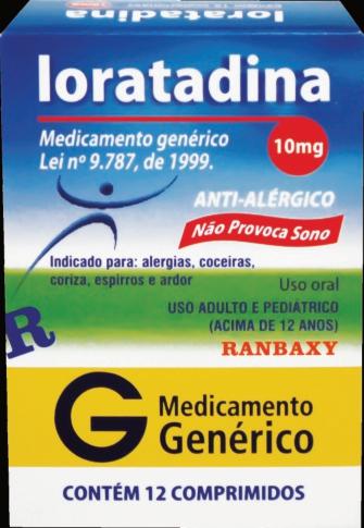 ativo: maleato de dexclorfeniramina Contraindicações: hipersensibilidade aos componentes da fórmula ou a outros anti-histamínicos de estrutura química similar; não deve ser usado em prematuros ou recém-nascidos; pacientes que estão fazendo o uso de inibidores da monoaminoxidase (IMAOs); menores de 2 anos Medicamento Genérico - Lei nº 9 787/99 | LORATADINA RANBAXY: M S 1 2352