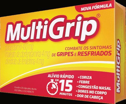 MULTIGRIP: M S 1 1819 0230 Princípios ativos: paracetamol, maleato de clorfeniramina, cloridrato de fenilefrina Indicações: indicado no tratamento dos sintomas de gripes e resfriados, destinado ao alívio da congestão nasal, coriza, febre, dor de cabeça e dores musculares presentes nos estados gripais | AMBROXOL TEUTO: M S 1 0370 0312 013-3 Princípio ativo: cloridrato de ambroxol Indicações: indicado para o tratamento das doenças broncopulmonares agudas e crônicas para facilitar a expectoração quando houver acúmulo de secreção | LEVOCETIRIZINA EUROFARMA: M S 1 0043 1124 Princípio ativo: levocetirizina Indicações: indicado para tratamento dos sintomas associados às enfermidades alérgicas e urticária crônica idiopática | LORATADINA RANBAXY: M S 1 2352 0079 003-0 Princípio ativo: Loratadina Indicações: indicada para o alívio dos sintomas associados com a rinite alérgica, da urticária e de outras alergias da pele | DIPIRONA NEO QUÍMICA: M S 1 5584 0325 Princípio ativo: dipirona monoidratada Indicações: analgésico e antitérmico