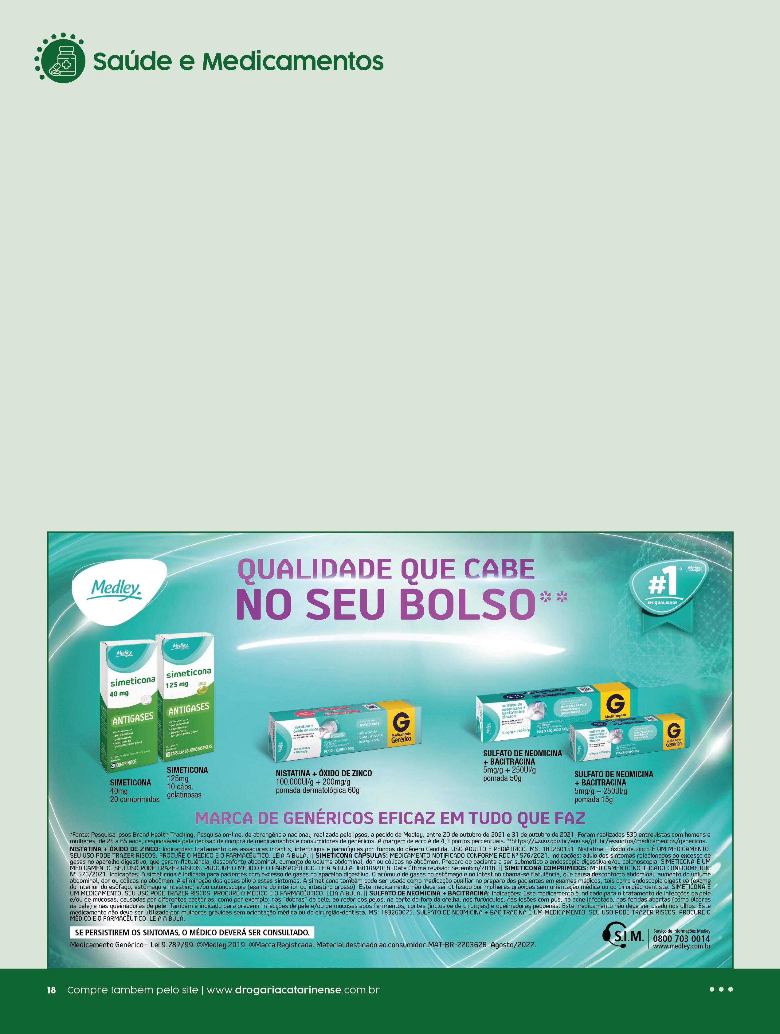 A retirada dos prêmios está condicionada à disponibilidade de estoque na loja onde está sendo realizada a solicitação A lista é válida de 03/10/2022 a 31/10/2022 ou enquanto durarem os estoques destinados a este fim Estoque limitado Os produtos contidos neste informativo podem sofrer alterações sem prévio aviso Imagens meramente ilustrativas Não será admitida qualquer alteração dos prêmios após emissão do recibo de resgate Obs : Os pontos acumulados pelo ASSOCIADO terão validade de 12 (doze) meses Dessa maneira, a pontuação conquistada num mês vigerá até o último dia do 12 (décimo segundo) mês após sua obtenção Para maiores informações, consulte o regulamento completo em uma filial Drogaria Catarinense ou no site wwwdrogariacatarinense com br Para sua segurança, solicitamos a apresentação de documento com foto para resgate dos pontos Sabonete em barra Dove Baby 75g cód 726814 Preservativos Prudence Cores e Sabores c/ 6 unid | Todos os t pos Escova dental Classic Oral B cód 700663 Sabonete líquido Lux Botanicals 200m cód 738364 Cotonetes Johnson's c/ 150 unid | cód 74130 Cortador de comprimido Incoterm Transparente cód 723441 Algodão Bellacotton c/ 50 d scos cód 713034 Cortador de unhas Marco Boni Baby ref 1828B cód 711746 Creme dental 3D White Oral B 70g cód 722267 Loção hidratante Monange 200m Exceto Q10 detox e hid intensiva Lenços para depilação Depi Roll c/ 20 unid | cód 715583 Band Aid Johnson's c/ 16 unid | Pequenos Fer mentos | cód 703747 Fita microporosa Cremer c/ 1 unid | 1,2cm x 4,5m | cód 699681 | 728569 Esponja Banho Fresh c/ 1 un d Todos os tipos Sabonete em barra íntimo Protex 85g cód 734146 | 734147 Esmalte Impala 7 5ml Exceto netflix aperte o play bai arina lollipop e retrô Toalhas umedecidas Eu Sou c/ 40 un d cód 731986Fio dental Colgate 50m Encerado | cód 690280 Leite de Colônia 100ml | Loção de limpeza Todos os tipos Escova dental Kids Oral B Mickey | cód 729593 Lenços de papel Kleenex c/ 50 unid | cód 706827 Sabonete em barra Francis 90g Todos os tipos Creme dental 1•2•3 Oral B 70g | Anticáries cód 728577 Escova dental Eco Reach Johnson's c/ 1 un d cód 712289 | 712290 Teste de gravidez Confira c/ 1 unid cód 709081 Curativo microporoso Nexcare c/ 10 un d cód 702396 Lixa para unha Marco Boni c/ 3 un d cód 709936 Algodão Cremer 50g | cód 689699 Absorvente Intimus Tripla Proteção c/ 8 unid Todos os tipos Hastes flexíveis Cottonbaby c/ 75 unid | cód 699114 Sabonete em barra Huggies 75g Todos os tipos Boni cód 712457 Removedor de esmalte Encasa 50ml | cód 614778 Sabonete em barra Nivea 85g Exceto antibacteriano Preservativos Blowtex c/ 3 unid | cód 640842 691915 694601 732206 Esparadrapo Cremer 2 5cm x 0 9m | Branco cód 74407 Solução fisiológica ADV 100ml 0 90% cód 706412 Atadura Neve Elástica Branca 12cm x 2 2m | cód 703041 Esmalte Risqué 8ml Exceto Coca Co a, Deusas Inspiradoras Diamond Friends K Pop Love Muitas de Mim Technology e Revolução das Cores Água oxigenada Encasa 80ml cód 693319 | 693320 Protetor diário Intimus c/ 15 un d sem abas cód 707161 736291 Hastes flexíveis Cremer 75 un d M nions | cód 730274 Touca plástica para banho Marco Boni Ref 8415 | cód 711597 Gel dental Tandy Colgate 50g Todos os tipos Sabonete em barra Dove 90g Todos os tipos Protetor labial Lip Ice 3 5g | FPS15 | Todos os t pos Toalhas umedecidas Mili c/ 50 un d cód 733285 Escova dental 1•2•3 Oral B c/ 1 unid | cód 726246 Gel dental Condor Bambinos 50g cód 721726 | 730433 Creme dental Neutraçúcar Colgate 70g cód 727558