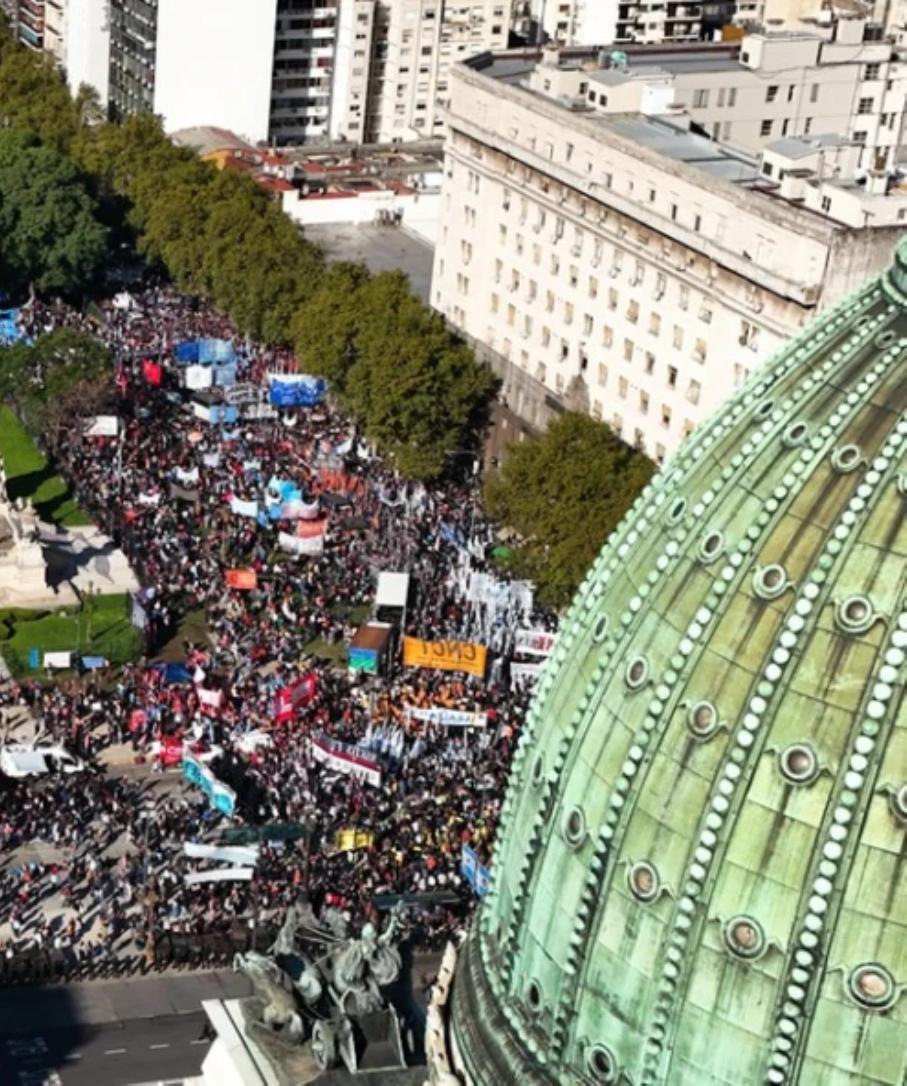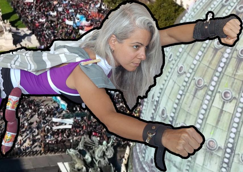 DESPUÉS DE SUS TAREAS DE RECICLADO SUPERCHIÚ SOBREVUELA EL ÁREA DEL PARLAMENTO Y AVISTA UNA GRAN PROTESTA DE CIUDADANOS QUE DEFIENDEN LA UNIVERSIDAD PÚBLICA DE ARTES