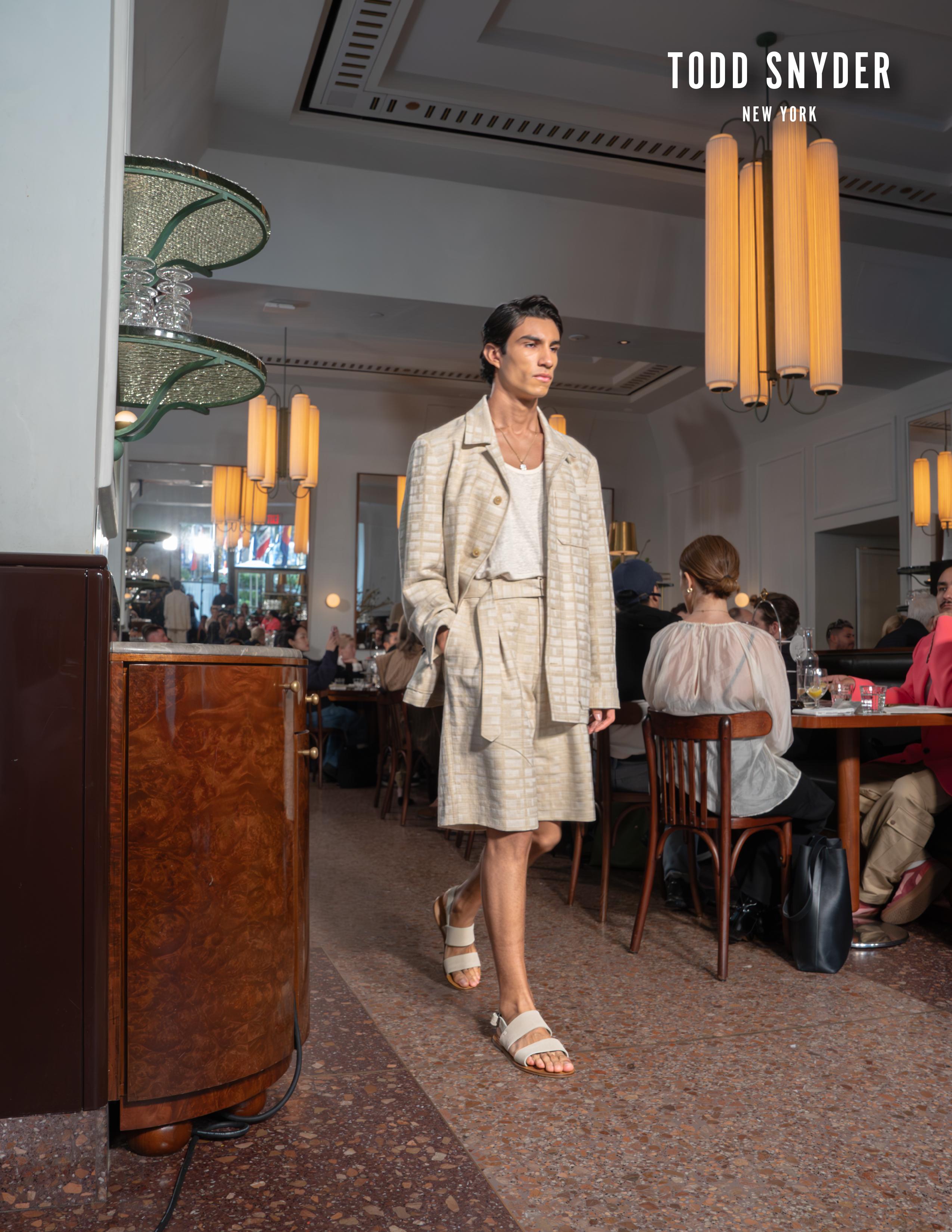 For spring/summer 2025, former J. Crew designer Todd Snyder, now the purveyor of two Los Angeles stores - The Grove and Abbot Kinney - went softer, flowier, prettier, pinker, peacher and sky-blue-er than his tweedy fall fare. In classic mens' club spot Le Rock at Rockefeller Center - an uptown eatery for well-heeled martini culture - showed soft suits, soft layers and shorts suits that push the envelope of menswear. Hey - I'd wear these clothes - if they ever wind up in my boyfriend's closet.