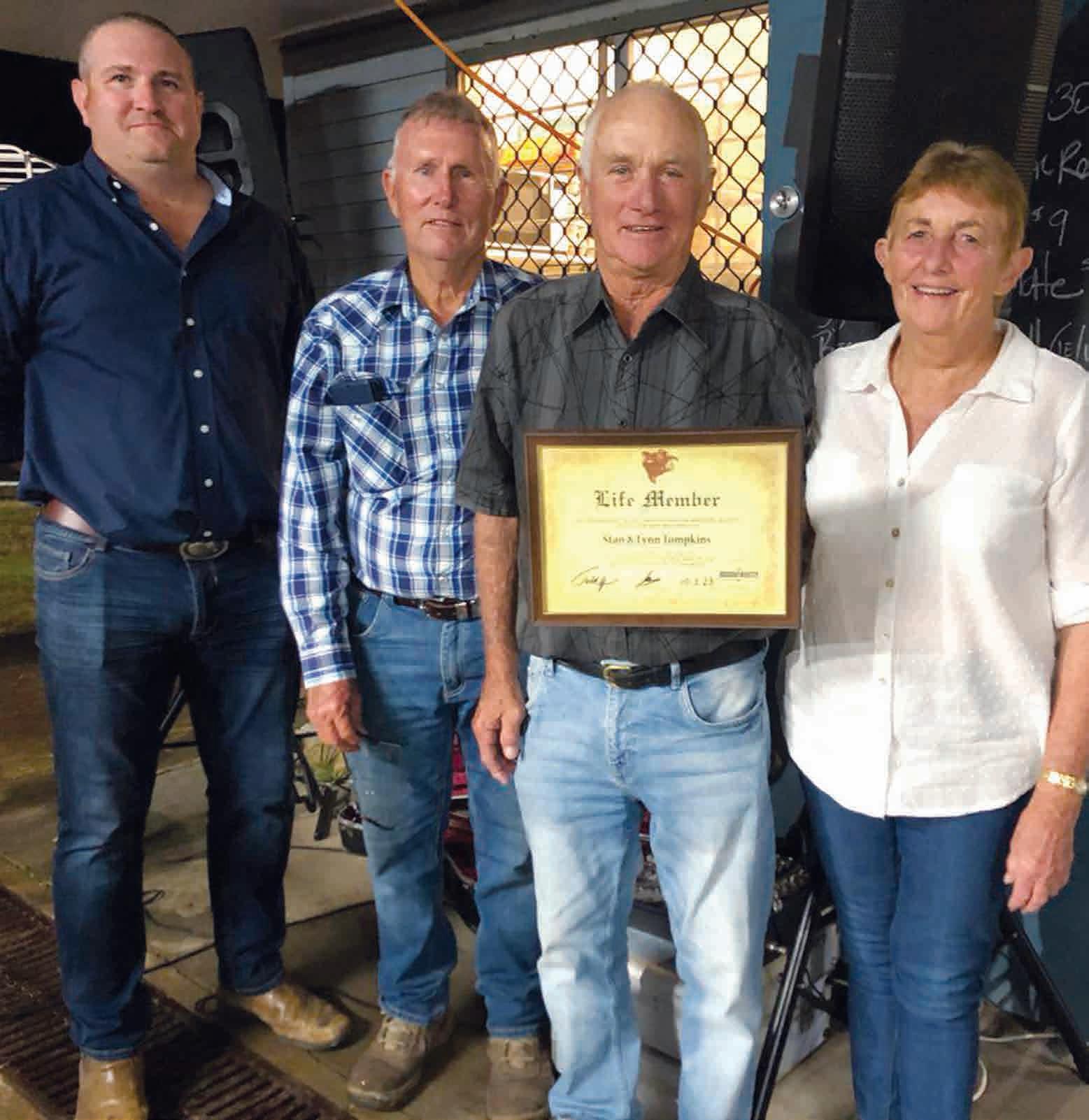 Stan and Lynn Tompkins have served the Droughtmaster Society and its members for almost four decades and have done so with distinction. They have actively promoted the Droughtmaster Breed and contributed to its growth in Southern Queensland. They have done this through service on formal committees and in formal roles, and informally through their commitment to the education, support, mentoring and development of countless Droughtmaster members during this time. Their enduring contribution to the breed and its members is now recognised through them being awarded Life Membership of the DSBS. Congratulations.