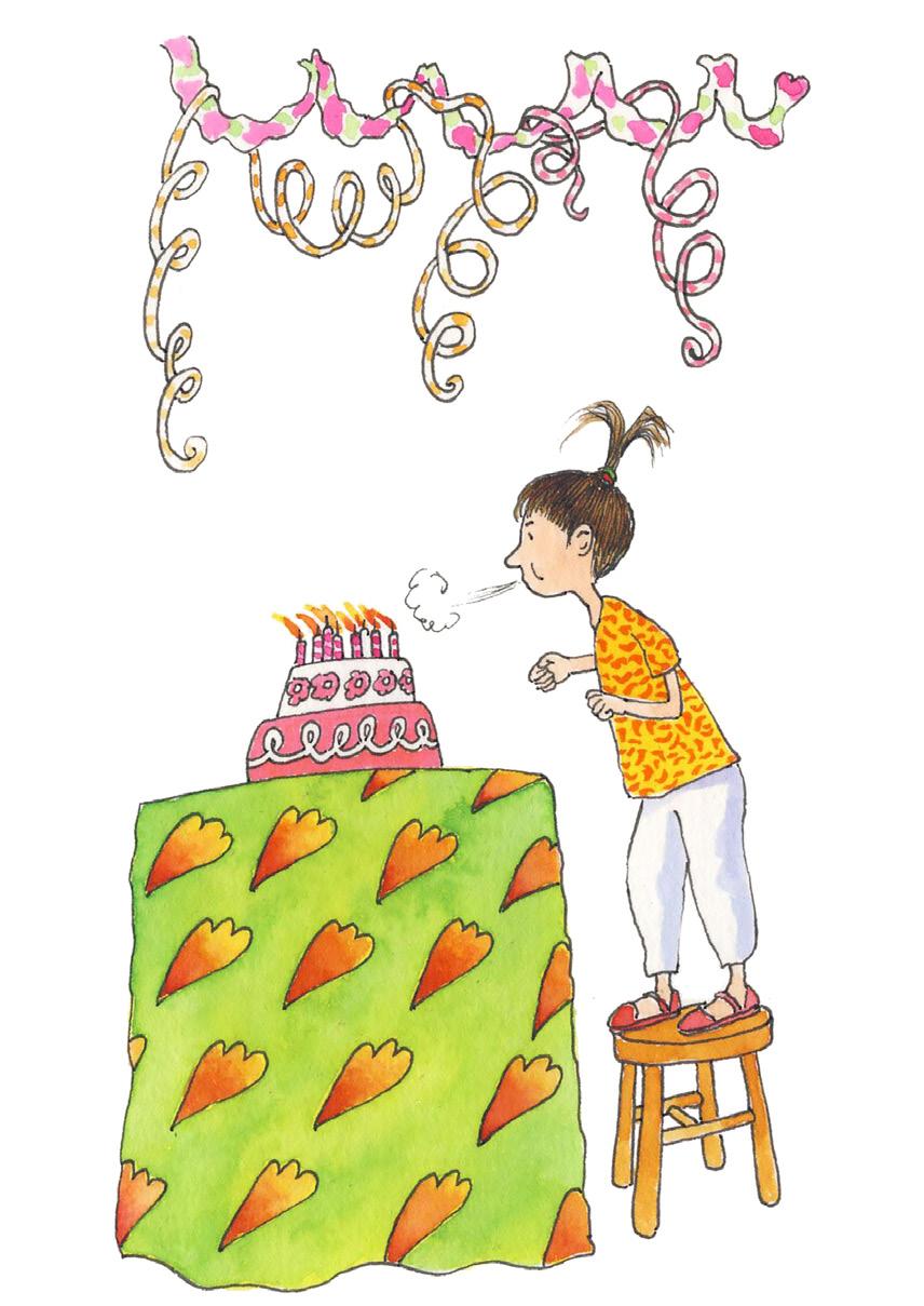 Aujourd’hui c’est le grand jour. Je me suis réveillée la première comme à chacun de mes anniversaires. J’ai sauté sur le lit de mes parents pour le câlin du matin puis j’ai filé mettre la table du petit déjeuner. Depuis j’attends… et j’attends… et j’attends encore. C’est difficile d’être patiente le jour de son anniversaire.