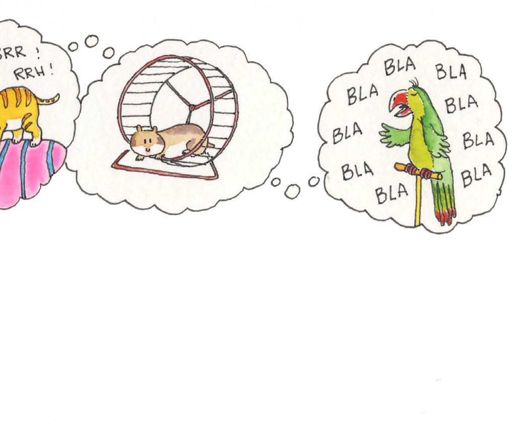 Le problème c’est que mes parents ne veulent pas d’animaux à la maison. Il paraît qu’on n’a pas la vie qui va avec. Je ne suis pas certaine d’avoir compris ce que cela voulait dire mais la résultat est qu’à la maison, il n’y a pas de chien toujours content de nous voir et qui laisse plein de poils sur les habits, pas de chat qui saute sur notre oreiller pour ronronner quand on est endormi, pas de hamster qui tourne dans une roue qui grince le soir vers minuit et pas de perroquet à qui on essaie d’apprendre à parler sans jamais y arriver.