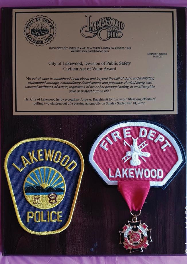 fue condecorado por el Departamento de Policía , El Departamento de Bomberos y la Alcaldía de Lakewood Ohio en donde en una ceremonia pública se le entregó el premio al valor civil de seguridad pública de la ciudad ,Jirge Ragghianti es un orgullo Hispano .Actualmente hace parte del staff de seguridad de la Empresa Del Rio Protective service.