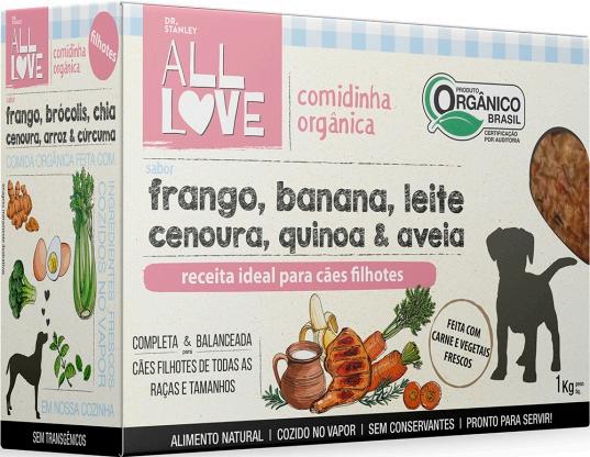 INGREDIENTES: carne de frango orgânico com ossos, fígado de frango orgânico, arroz integral orgânico, cenoura orgânica, abóbora orgânica, espinafre orgânico, brócolis orgânico, ovo orgânico, óleo de soja orgânico, grão de bico orgânico, grãos de linhaça e quinoa orgânicos, aveia orgânica, óleo de coco orgânico, água*, farelo de goiaba*, colágeno hidrolisado*, levedura inativada desidrada*, biomassa de microalgas Schizochytrium sp*, aipo*, orégano* e salsinha* desidratados, vitaminas (A, D3, E, K3, B1, B2, B5, B6, B12, C, niacina, ácido fólico, biotina)*, fosfatilcolina*, minerais (sulfato de ferro, sulfato de cobre, sulfato de manganês, organomanganês, sulfato de zinco, organozinco, iodato de cálcio, selenito de sódio, organoselênio),* cloreto de potássio*, cloreto de sódio*, metionina*, tocoferol*, extratos vegetais (alecrim, hortelã, chá verde, yucca, equinácea, alcachofra)*, aloe vera*, cúrcuma* (* ingredientes não orgânicos).