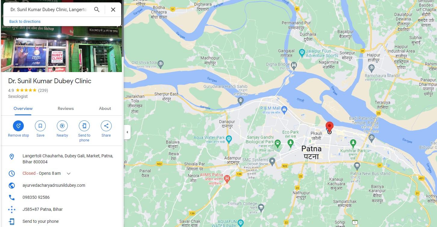 Dubey Clinic is an Ayurvedic Rehabilitation Centre is also called Sexologist in Patna. It provides A to Z Ayurveda Medicare and Treatment privileges to all male and female patients who are suffering from sexual or secret diseases. It is located at Dubey Market, Langar Toli Chauraha in Patna-800004. This Ayurveda clinic is the oldest clinic in Patna, Bihar that provides all over India sexual patients medication and treatment facility. It was established in 1970 by the world-famousVaidh Subash Dubey.