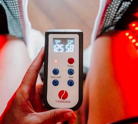 Our clinic’s favorite infrared sauna is by Therasage. Therasage’s sauna contains infrared heating panels and tourmaline gemstones which help generate negative ions.