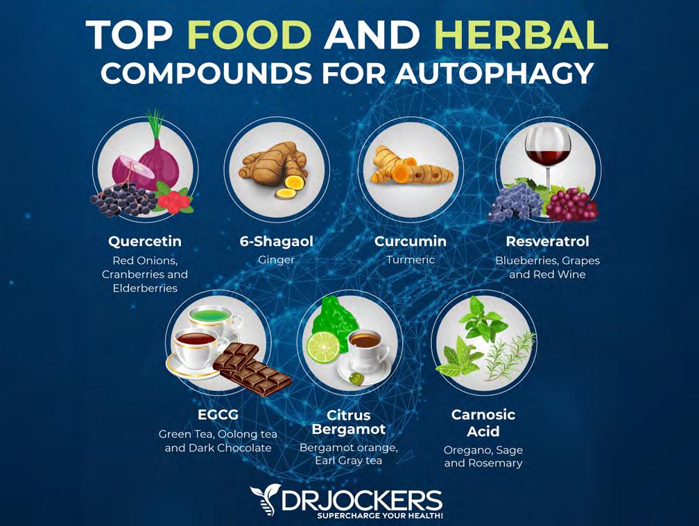 This isn’t as strong a stimulus towards autophagy as fasting but it can be used in conjunction with fasting and the other strategies in this article to optimize the autophagy mechanisms in your body. Some of the best herbs for this include quercetin (red onions and elderberries), carnosic acid (oregano, sage and rosemary) citrus bergamot (Earl Gray tea), EGCG (green tea and dark chocolate), 6-shagaol (ginger), curcumin (turmeric) and resveratrol (blueberries, grapes and red wine) among others.