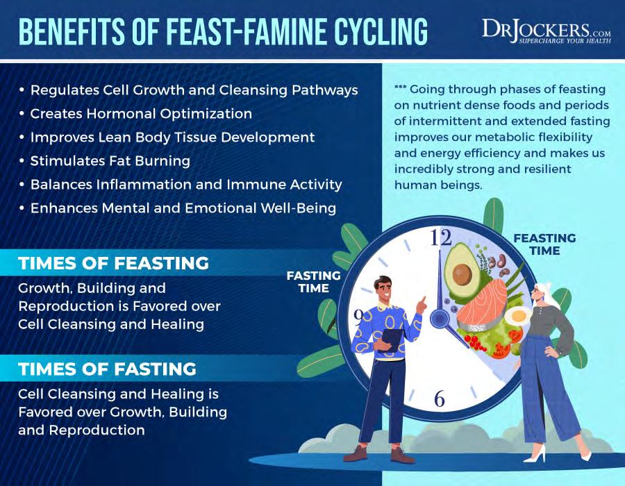 When we periodically feast on healthy nutrient dense foods, we flood the body with key nutrients it needs and we also stimulate metabolic pathways that help us to burn fat for fuel and have proper lean body tissue development.
