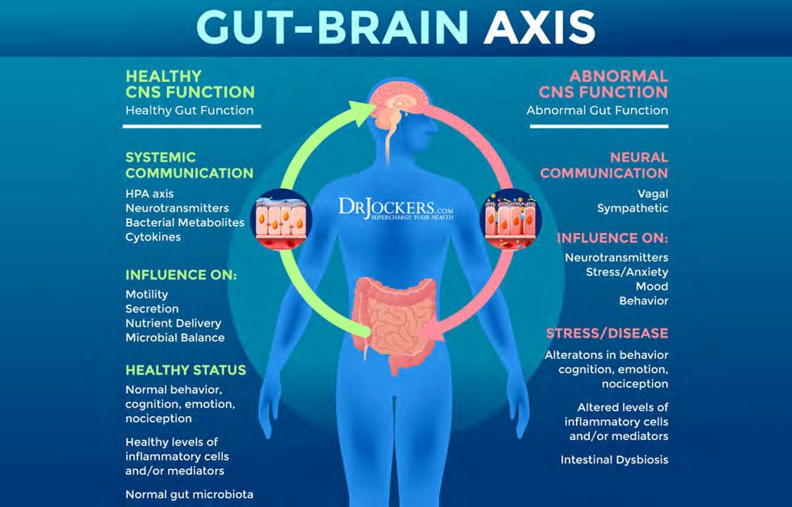 This connection between your gut and brain not only happens when short-term exciting or stressful events occur, but the communication between these two organs is on-going, longterm, and intimate. Gut dysbiosis and gut infections lead to an imbalance in your entire body and increase chronic inflammation.