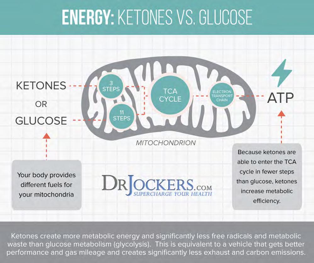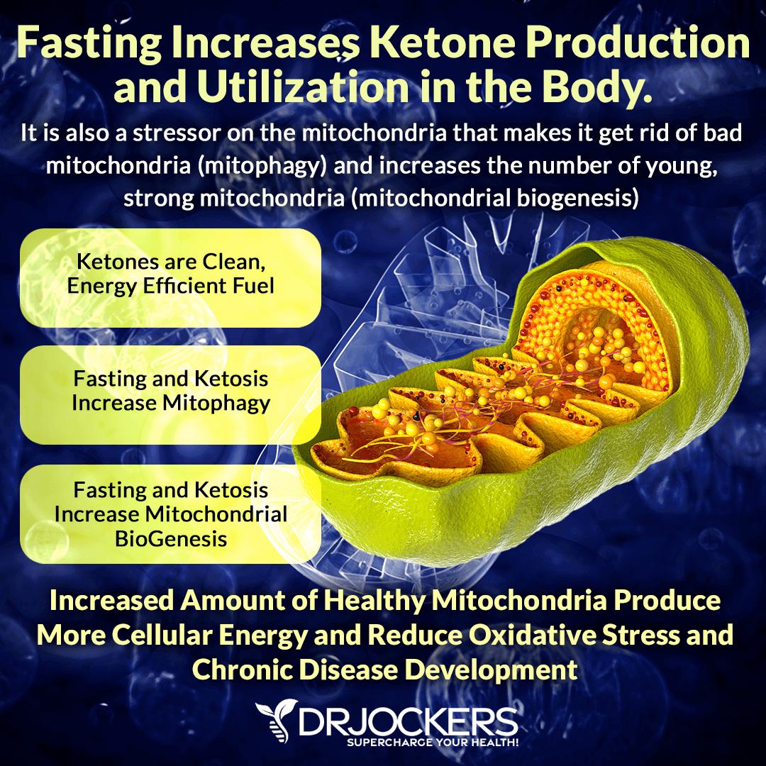 Under the regular circumstances, most people's body creates energy by breaking down glucose from dietary carbohydrates. However, when your body doesn't receive enough glucose supply, it turns to dietary or stored body fat for energy. These fats are converted in the liver into ketones that enter your mitochondria inside your cells to be turned into energy. This process of ketosis helps to enhance autophagy, reduce inflammation, improve mitochondrial biogenesis, improve brain health, and increase mental sharpness. The best way to experience ketosis is through the combination of the keto diet and intermittent fasting.