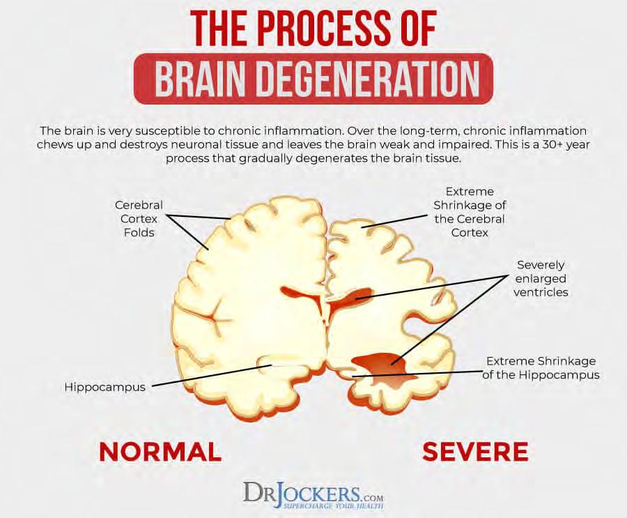 New symptoms can develop and symptoms usually get worse over time as the condition progresses. There is currently no cure for neurodegenerative diseases, however, early diagnosis and treatment can be highly beneficial. Traditional treatment involves medication and behaviorial management, however, natural treatment methods, including diet and lifestyle changes may improve the condition or delay symptoms significantly . These dietary and lifestyle strategies are also an absolute key to preventing brain degeneration. Before we dive into natural solutions for brain degeneration, let’s discuss some of the major causes of brain degeneration (17, 18).