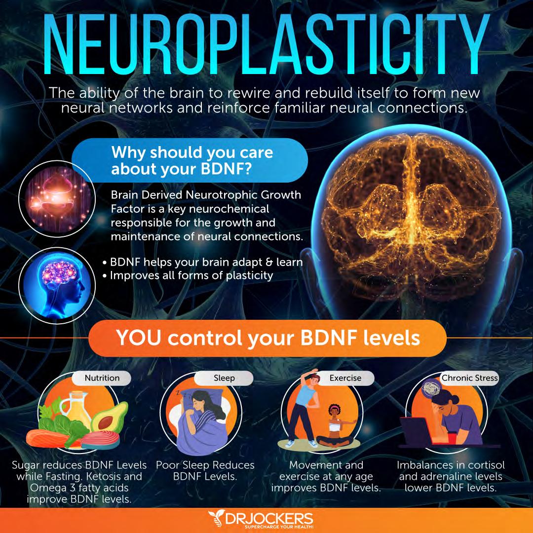 Research has shown that BDNF is critical for long-term enhancement of synaptic efficacy. It improves neural development and synaptic plasticity, hence it may lower the risk of neurodegenerative and psychiatric disorders, such as dementia, Alzheimer’s disease, Huntington disease, and depression (7, 8, 9, 10, 11, 12, 13).