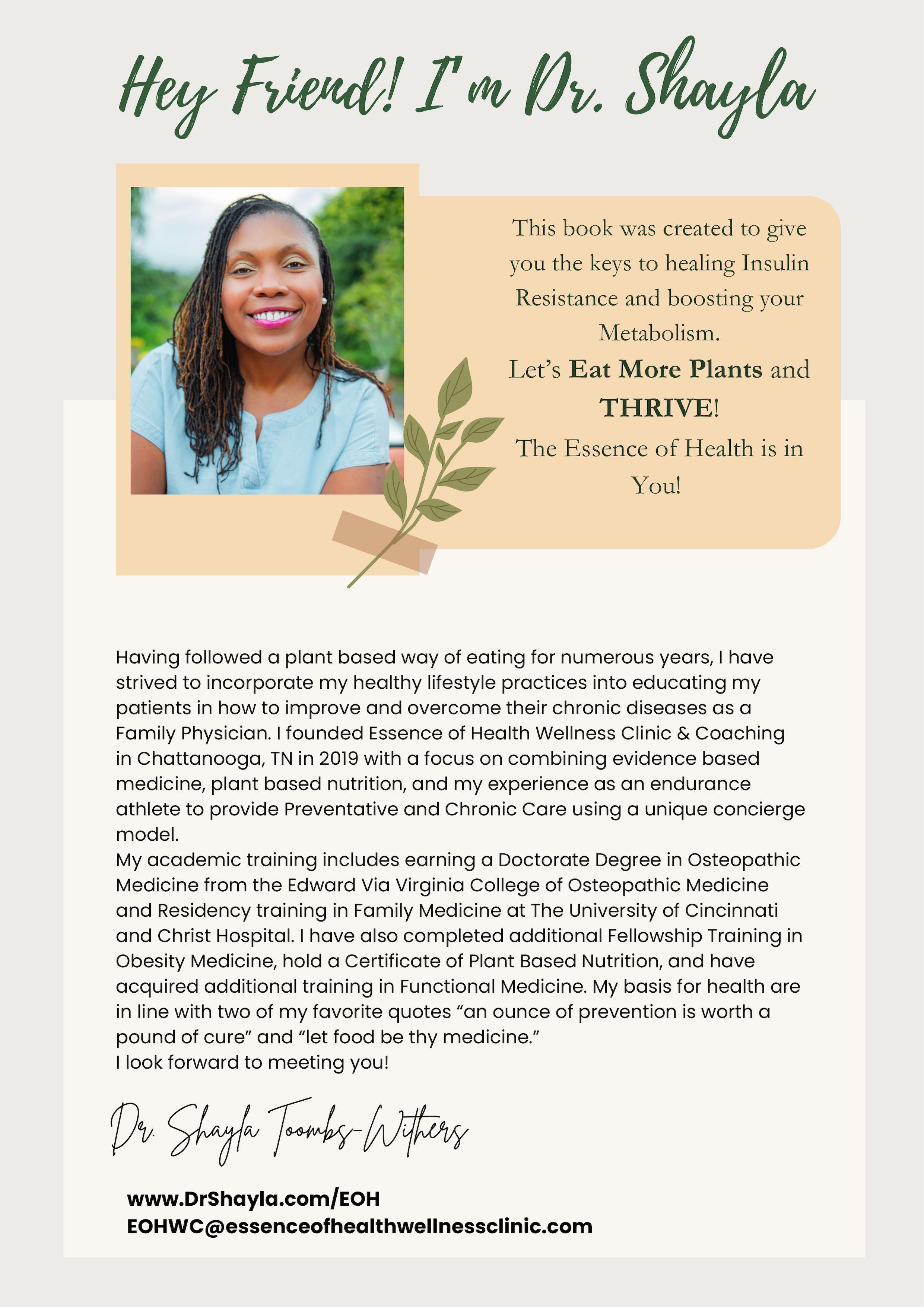 Insulin Resistance is a major contributor to weight gain and makes it challenging to achieve weight loss. This guide will help you to understand more about the condition of insulin resistance and how it affects your weight. Metabolic Health Expert, Dr. Shayla Toombs-Withers, shares scientifically proven strategies to help you improve your insulin sensitivity, promote healthy weight loss, and improve your overall health and wellness.