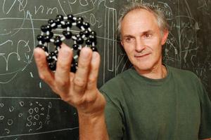 In 1985, C60 was discovered by scientists Harold Kroto, Robert Curl, and Richard Smalley. They were trying to determine the decades-old mystery of what molecule was absorbing infrared light in interstellar space. Kroto was convinced that these unusual spherical carbon molecules had been created in the atmospheres of giant red stars.
