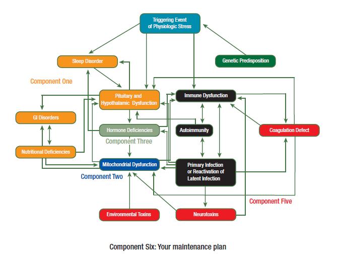 An emotional or physiologic triggering event often occurs under the back-drop of a chronic Lyme infection, which can set into motion a vicious cycle of pathophysiology with immune dysfunction being at the heart of the problem