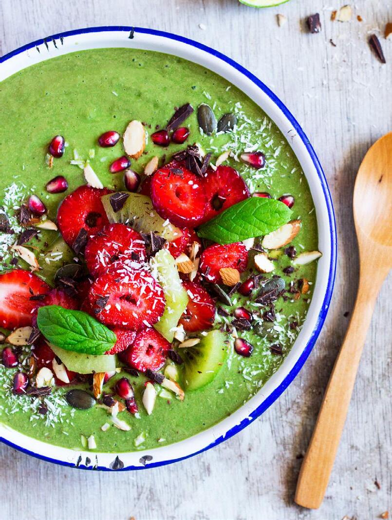 While traditional smoothies need to be very well balanced so you can easily sip them, in smoothie bowls you can include more nourishing foods LIKE HEALTHY FATS, FRUITS, NUTS AND SEEDS, COCONUT OR EXTRA TOPPINGS . This green smoothie bowl is not only topped with delicious goodies, they’re loaded with MINERALS , ANTIOXIDANTS and CHLOROPHYLL , which nourish and oxygenate the liver cells, providing great support for detoxification.