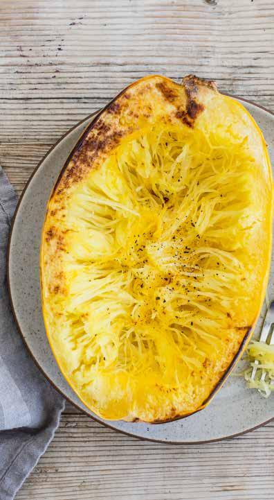 TO MAKE: Put the spaghetti squash in the slow cooker, cover, and cook on low for 8 to 10 hours, or until the squash feels soft. Remove the squash and let it cool until you can handle it. Cut it in half lengthwise, scoop out the seeds, and scrape out the pasta-like strands with a fork.