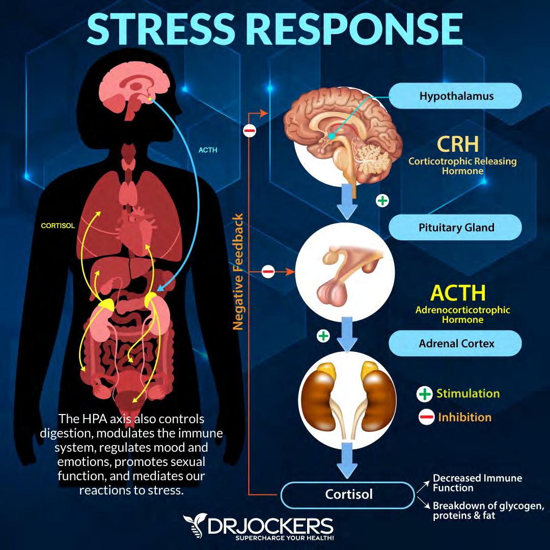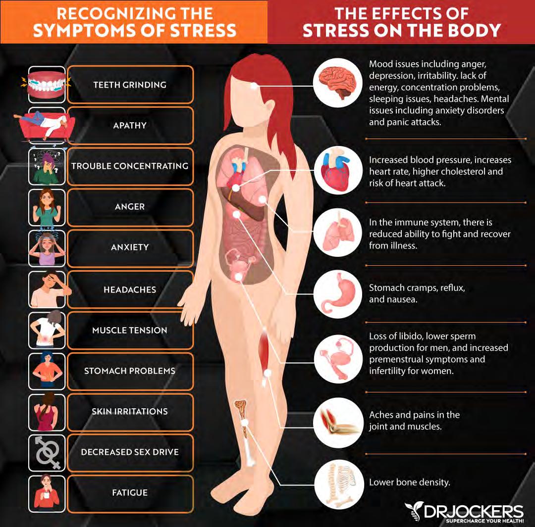 Chronic stress will increase the levels of cortisol, norepinephrine and epinephrine in the brain and body. This also shunts the body into producing more excitatory glutamate and reduces GABA production.