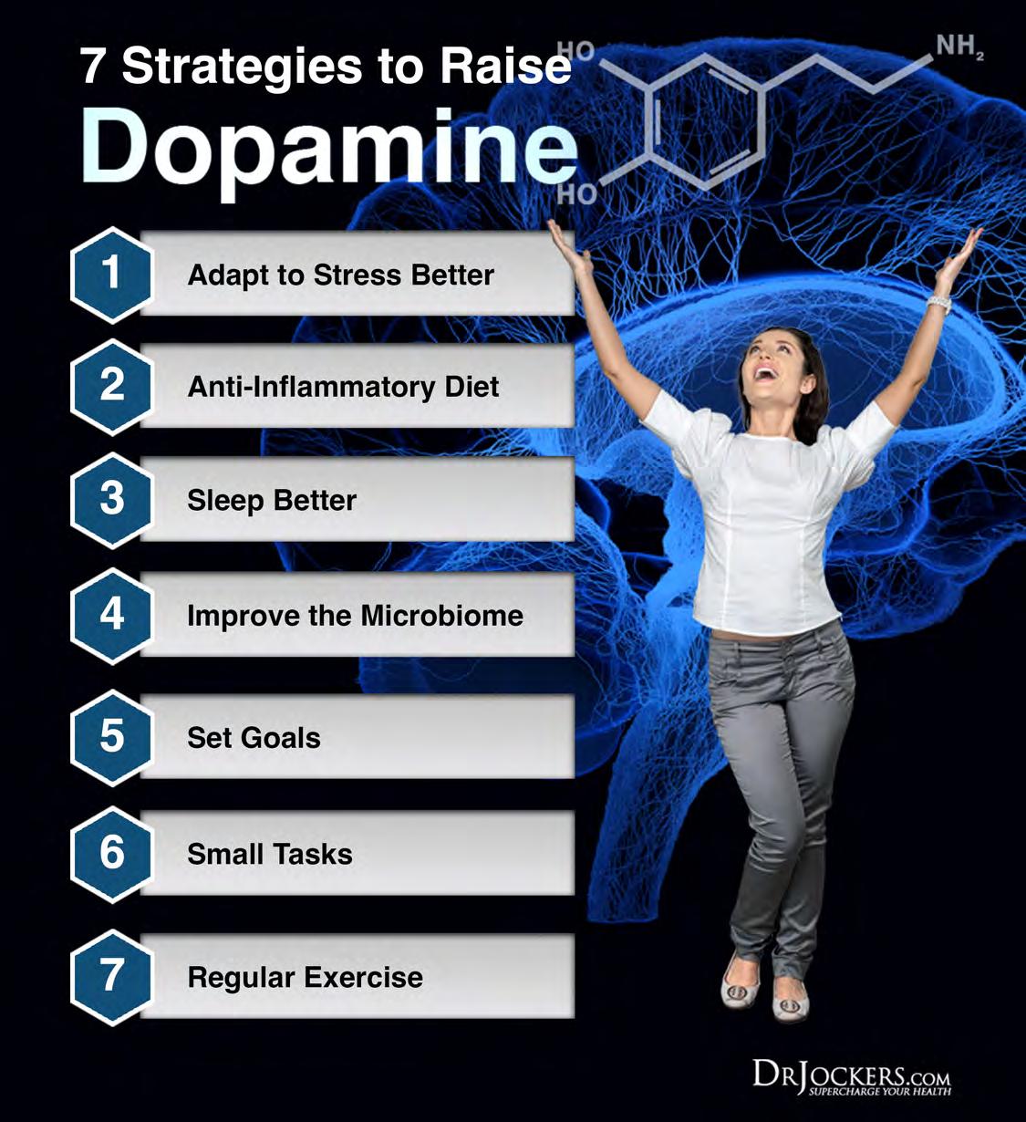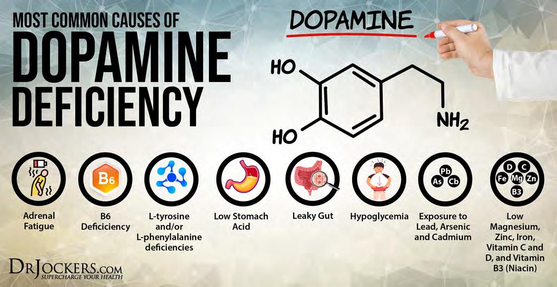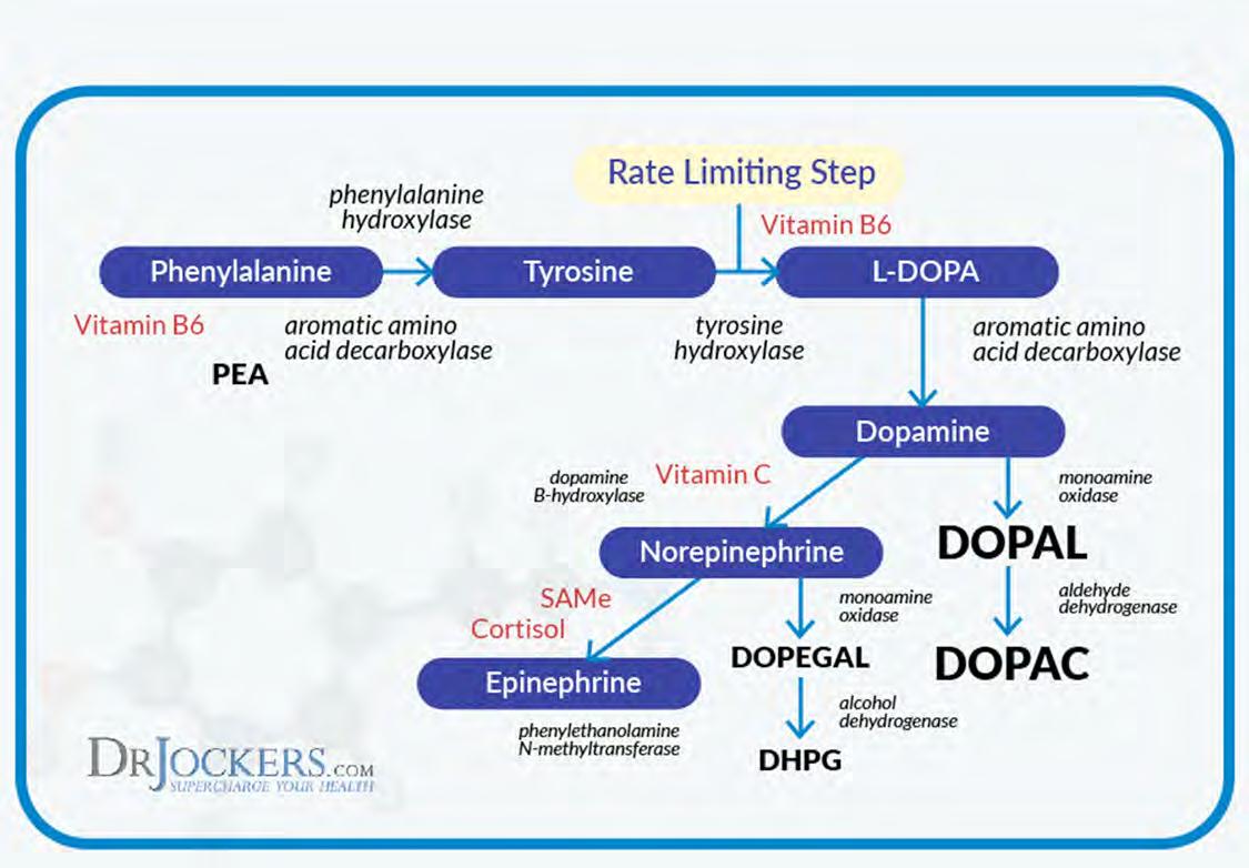 Dopamine Plus: This formula contains clinical dosages of L-tyrosine, DL Phenylalanine, vitamin C and B6 and it contains 5-HTP which helps keep the dopamine:serotonin balance in order.