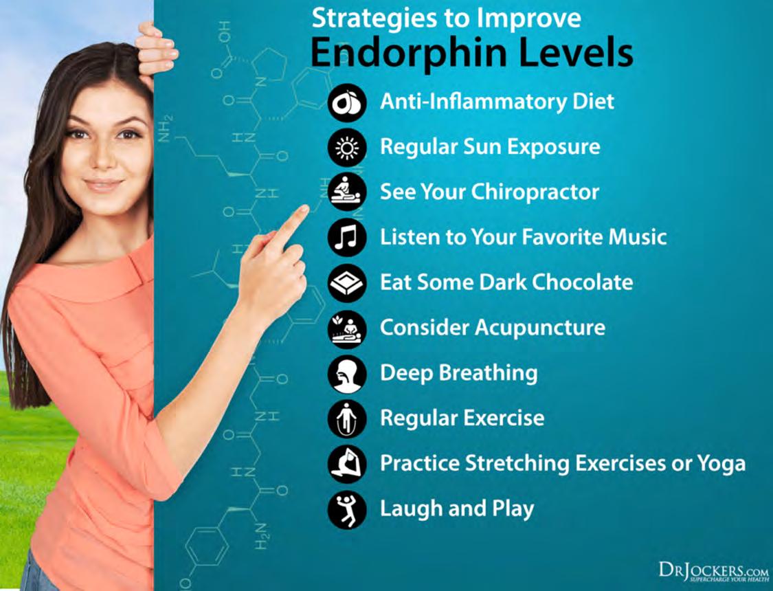 4. Listen to Your Favorite Music: Listening to music can boost endorphins, which is why we often feel so good when we listen to music we enjoy. If you do have endorphin deficiency, I would caution against loud, aggressive or highly stimulating music until you are healthier, as it could cause your adrenals to crash.