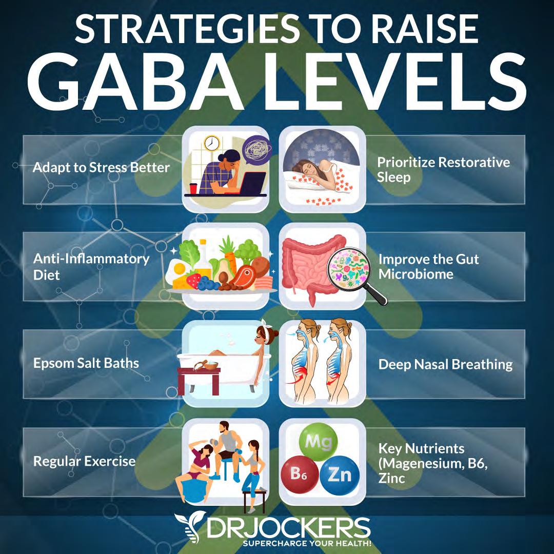1. Adapt to Stress Better: Chronic stress will deplete your GABA levels. Find things to be grateful for, practice deep breathing, listen to enjoyable music, get regular sun exposure, find ways to laugh and find other stress management strategies to help reduce stress and become more resilient.