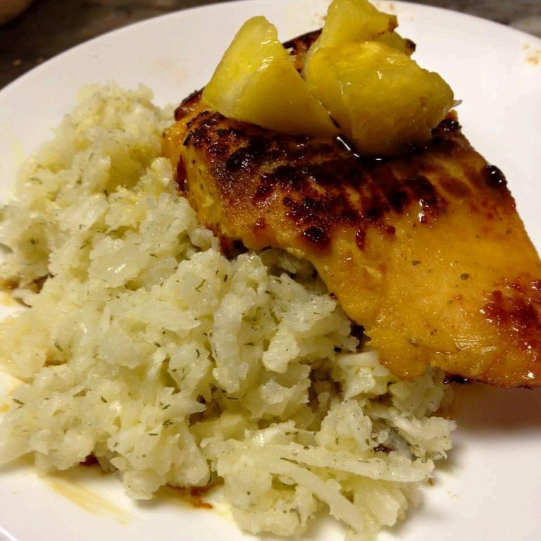 Spoon salsa over the top of the salmon. Can serve with dill cauliflower rice