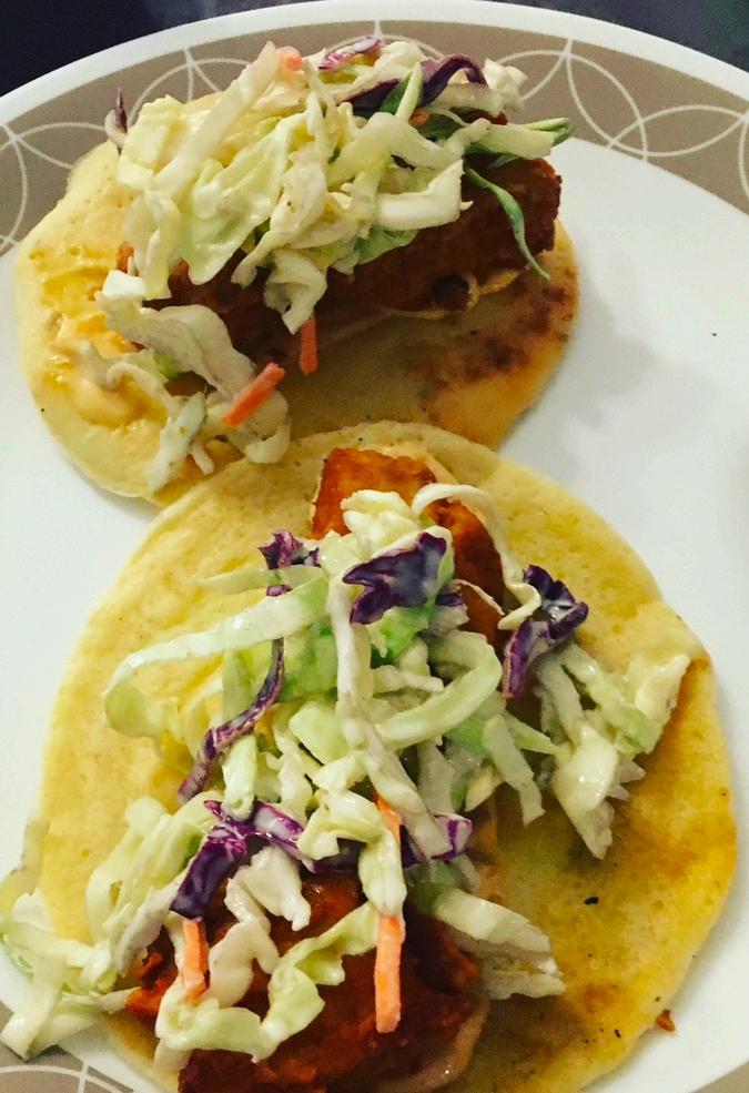 Pour batter onto a small skillet with oil and thin out like crepe. Partially cook both sides