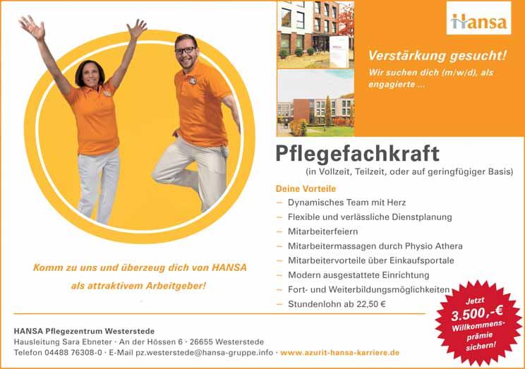 September/Oktober 2023 22. Jahrgang Nr. 126 Das Gemeindemagazin. Von Uplengenern – für Uplengener Das nächste Blattje erscheint Ende November 2023 – Redaktionsschluss: 05.11./ Anzeigenschluss: 08.11. Zustellung durch die Deutsche Post Postwurfsendung –An alle Haushalte Kontakt? Telefon: 04489-928026 · E-Mail: blattje@ewetel.net · www.blattje.de Zur Verstärkung unseres Teams werden ständig auch Lehrkräfte (m/w) gesucht. Alle Fächer Alle Klassen LRS-Training Nachhilfe in ganz Ostfriesland/ Friesland, auch in kleineren Orten! 0800/0062244 www.minilernkreis.de in Remels Uplengener Herbstmarkt Sonntag 17. September • Großer Flohmarkt • Verzehrstände • Livemusik • Handwerk • Oldtimer • Offene Geschäfte zum Programmieren und Einrichten unserer Werkzeugmaschinen CNC-Dreher und Fräser m/w/d Wir suchen zum nächstmöglichen Zeitpunkt Foto: Marion Holtz 10% auf ALLES * *Nur gültig für Pluskartenkunden und die, die es werden möchten. Ausgenommen Top- und Werbepreise. www.baeckerei-hoppmann.de regional handgemacht lecker Gebacken mit erntefrischem Kürbis aus der Region Kürbisstuten Zeit für Jetzt ist Kürbisernte und bei Hoppmann gibt es wieder den leckeren Kürbisstuten mit frischem Kürbismus gebacken.