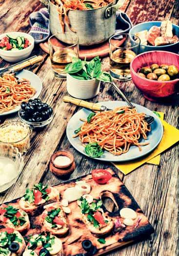 Vorspeisen: Honigmelone mit Bauernschinken, Tomate/Mozzarella / Suppen: Hühnersuppe und Lauchcremesuppe / Salate: Tomaten-, Gurken-, Chinakohl- u. Bohnensalat, versch Dressings / Hauptgang: Rinderrouladen, Schweinefilet in Pilzrahmsauce, Entenkeule, Hähnchen cordon bleu, Spanferkel Rollbraten, geschmorter Rehbraten mit Waldpilzen, Seelachsfilet mit Senfsauce / Gemüse: Apfelrotkohl, Erbsen mit Möhrchen, Rosenkohl, Speckbohnen / Beilagen: Salzkartoffeln, Kartoffel-/Gemüsegratin, Kroketten und Kartoffelklöße / Dessert: Vanilleeis mit Zimtpflaumen, Schokocreme und Zimtsterne-Eis