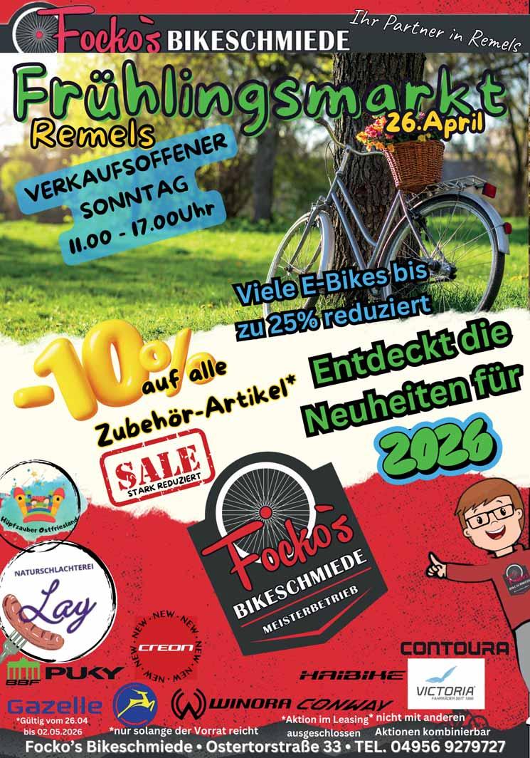 Remels Sonntag, 26. April 2026 11–19 Uhr Ortsmitte Uplengener Frühlingsmarkt