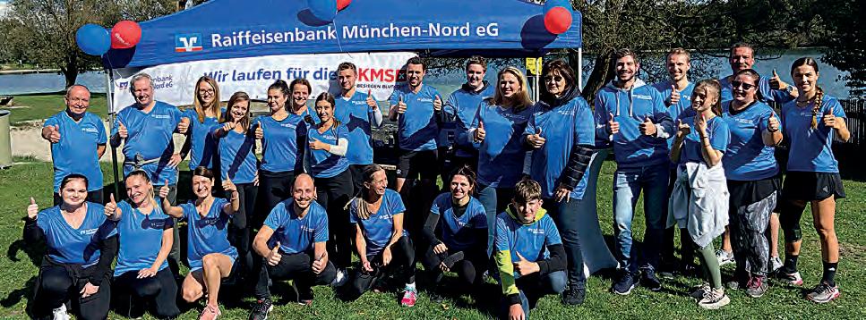 stand – mit dabei. Die Kombination aus Sport, anschließendem gemütlichen Beisammensein und vor allem natürlich das Laufen für den guten Zweck waren die Motivation. Dafür kamen Mitarbeitende aus allen Geschäftsbe reichen der Bank: Haimhausen, Unterschleiß heim und den Münchener Filialen Feldmo ching, Lerchenau, Allach, Fasanerie, Moosach, und Harthof.
