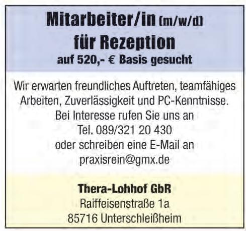 Landkreis-Anzeiger GmbH Einsteinstraße 4 85716 Unterschleißheim-Lohhof Telefon 0 89 / 32 18 40-0 Telefax 0 89 /3 17 11 76 info@landkreis-anzeiger.de