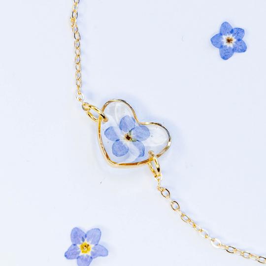 ARMBAND OPHELIA hart met gedroogde Vergeet me nietjes