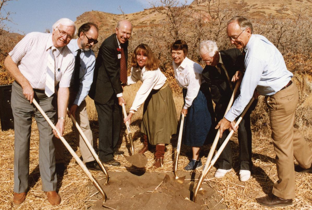 Ezekiel “Zeke” Dumke (third from left) participates in the Red Butte Garden and Arboretum groundbreaking in 1984.