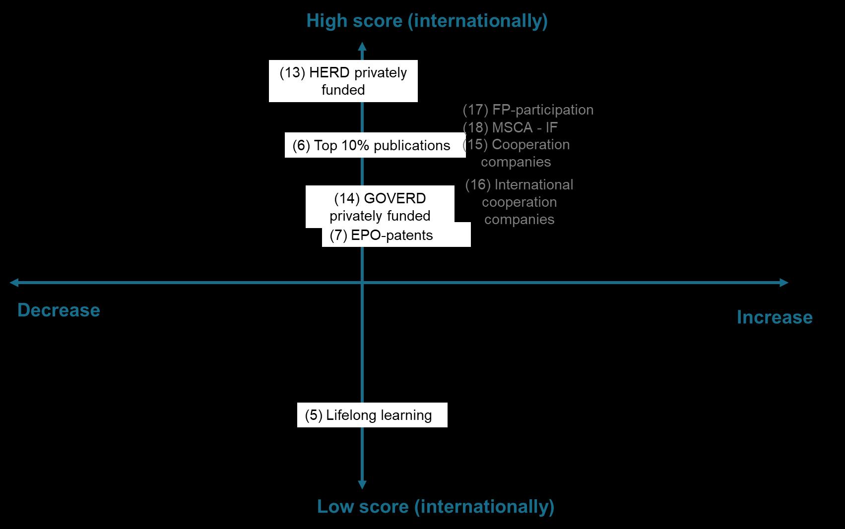 VARIO wil hier nog eens aanhalen dat indicatoren beperkingen hebben en dat het belangrijk is om indicatoren in de juiste context te plaatsen. VARIO herhaalt graag dat het belangrijk is om voldoende te investeren in de ontwikkeling van (nieuwe) indicatoren. Er moet tijdig ingespeeld worden op nieuwe evoluties (zie ook VARIO-advies 13 ‘Een kwaliteitsvolle set indicatoren voor wetenschap en innovatie’).