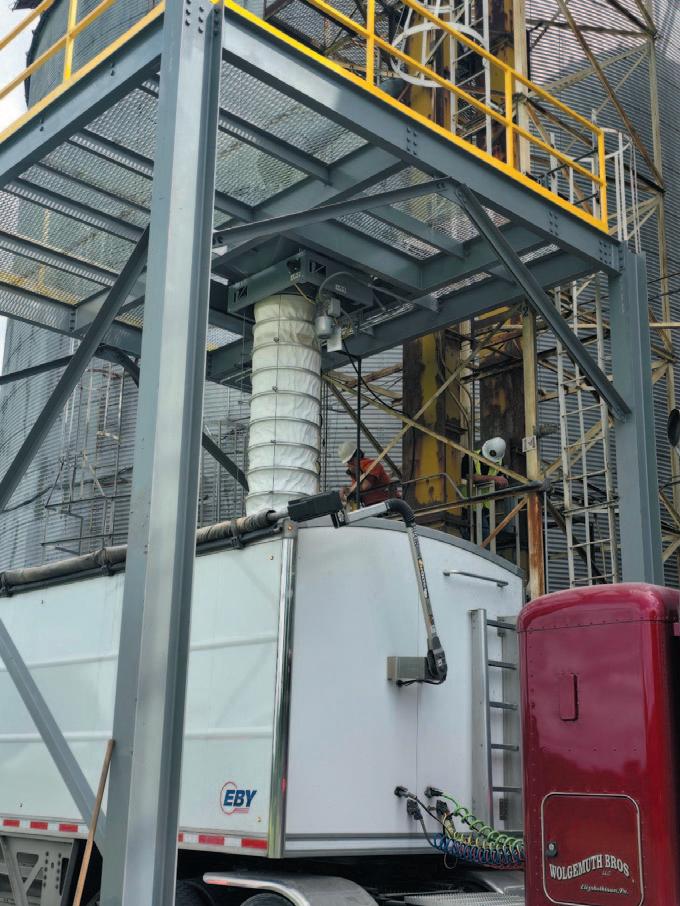 discussed early on, and multiple options are available. Desired throughput rate will inform the handling system and its size, but the type of equipment selected might largely be determined by cost. Grain is most commonly reclaimed via clean-sweep screw or auger that pulls material into a hopper. But some types of reclaim can’t move 100,000 bushels an hour out of a dome — that’s best achieved by a front-end loader or a Vibrafloor. However, the cost difference between those two options is substantial — the former might cost $150,000 to $250,000 versus $1 million for the latter. Since grain is a tight-margin industry, the more product a company pushes through, the more money they make, and many seek the least expensive system that can move the most volume.