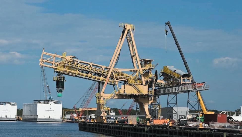 reducing unloading time. Liverpool: Bedeschi has just delivered v another ship-unloader for a customer operating in the Port of Liverpool in the UK. This unit is able to unload material at a capacity of 800tph. Also this ship-unloader features a cutter able to unload free-flowing as well as non-free-flowing (meals, DDGS) materials.
