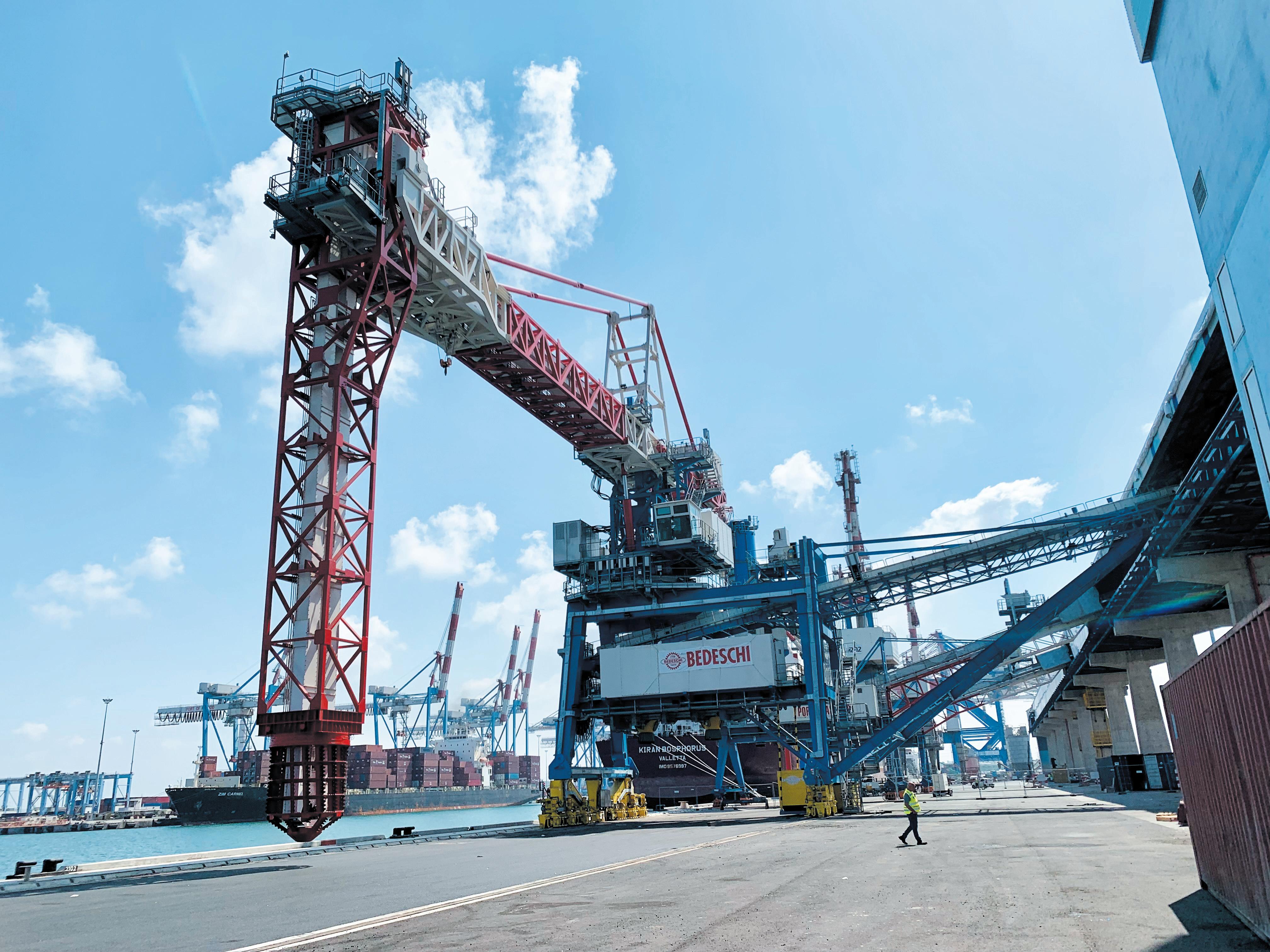 Ashdod Port: Bedeschi designed a v continuous ship-unloader (CSU) that operates at a capacity of 1,200tph and it features a cutter able to unload free-flowing as well as non-freeflowing (meals, DDGS) materials. To ensure operability with non-freeflowing materials, the CSU is equipped with a rotating cutter able to effectively de-compact any kind of meal. Thanks to the dimensions of this device, most of the products can be unloaded without the assistance of auxiliary Bobcats/ wheeled loaders, increasing safety and