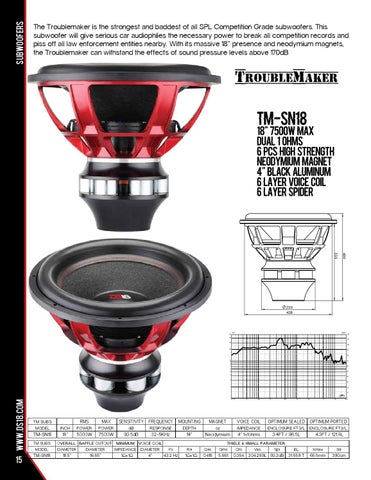 The Troublemaker is the strongest and baddest of all SPL Competition Grade subwoofers. This subwoofer will give serious car audiophiles the necessary power to break all competition records and piss off all law enforcement entities nearby. With its massive 18” presence and neodymium magnets, the Troublemaker can withstand the effects of sound pressure levels above 170dB