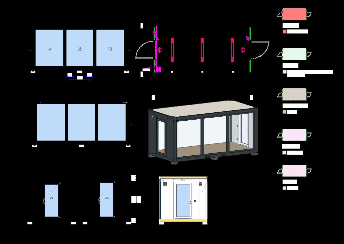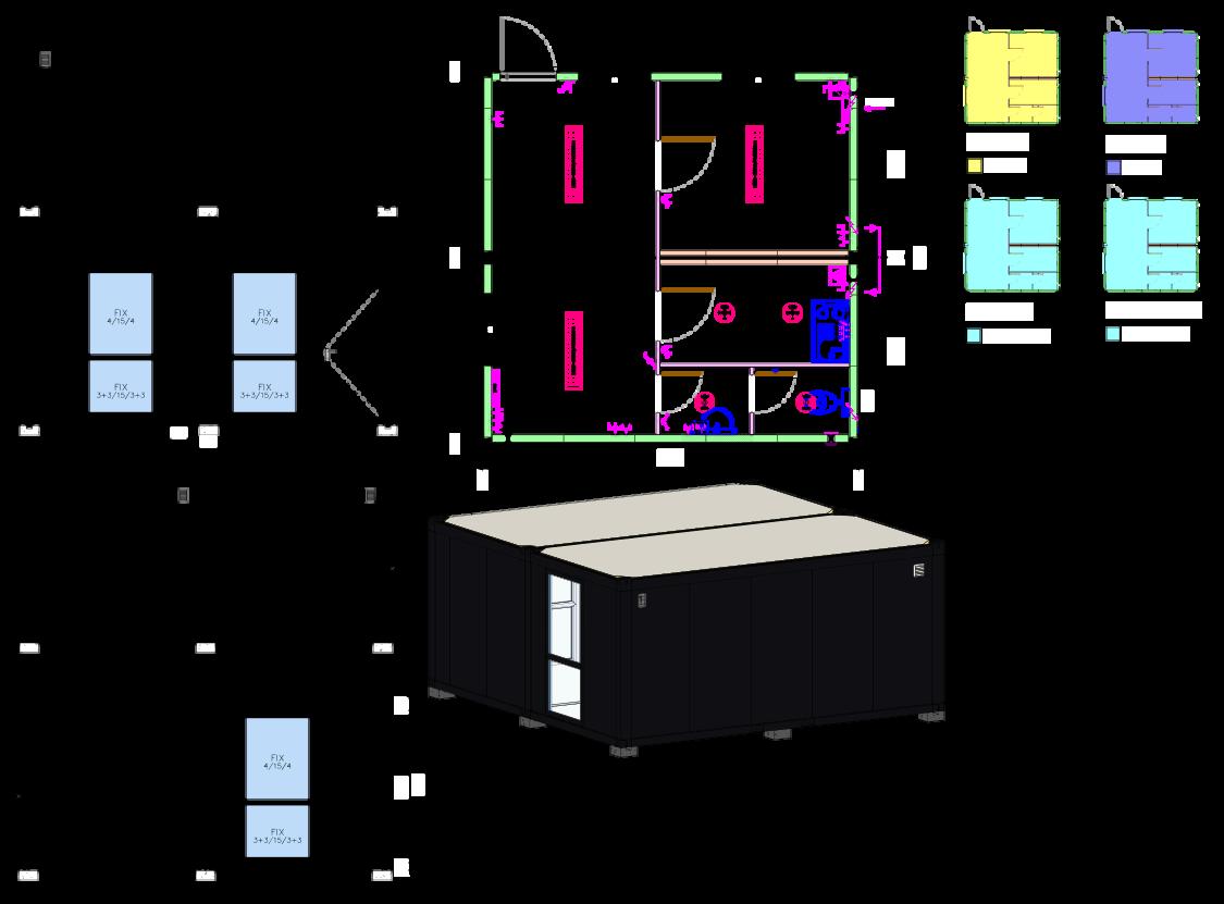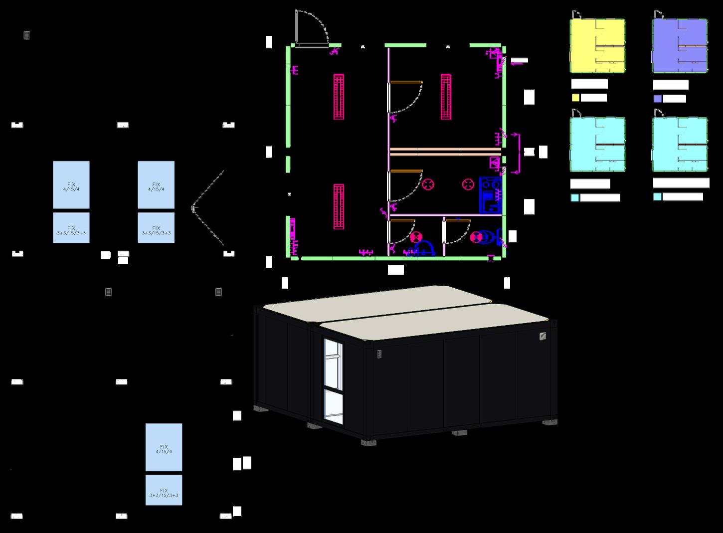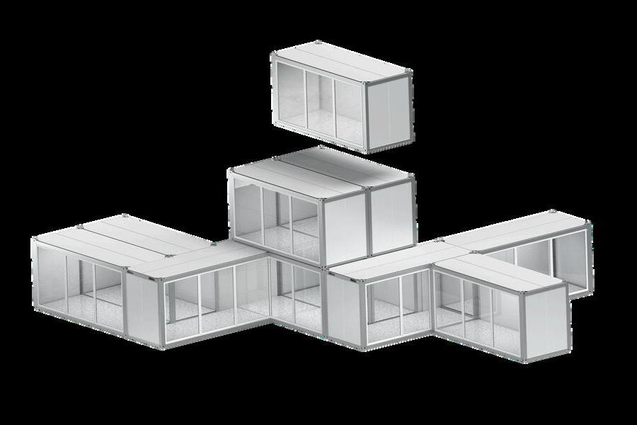 Les modules peuvent être aménagés et finis selon les besoins. Ils sont également juxtaposables et empilables, ce qui permet de réaliser, à partir d’unités standard, des projets complexes et de grande envergure. Des applications simples aux bâtiments modulaires complets, conformes aux normes incendie et PEB en vigueur.