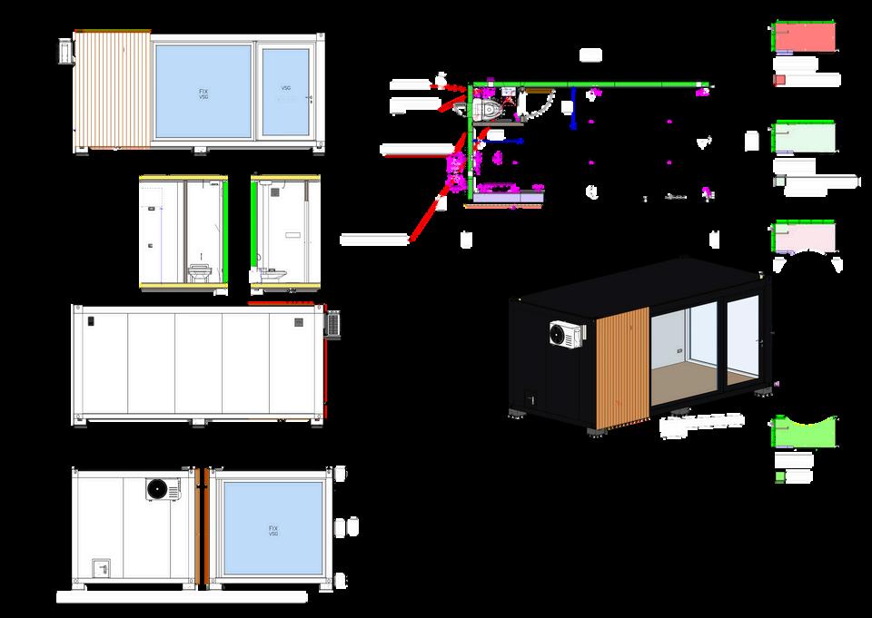 Grâce à notre production et à nos transformations réalisées en interne, les units de location peuvent être adaptées à l’usage souhaité, avec des options telles que l’isolation, l’électricité, le sanitaire, le chauffage, la climatisation et les finitions intérieures. Les units peuvent être placées individuellement, assemblées ou empilées selon les besoins du projet.